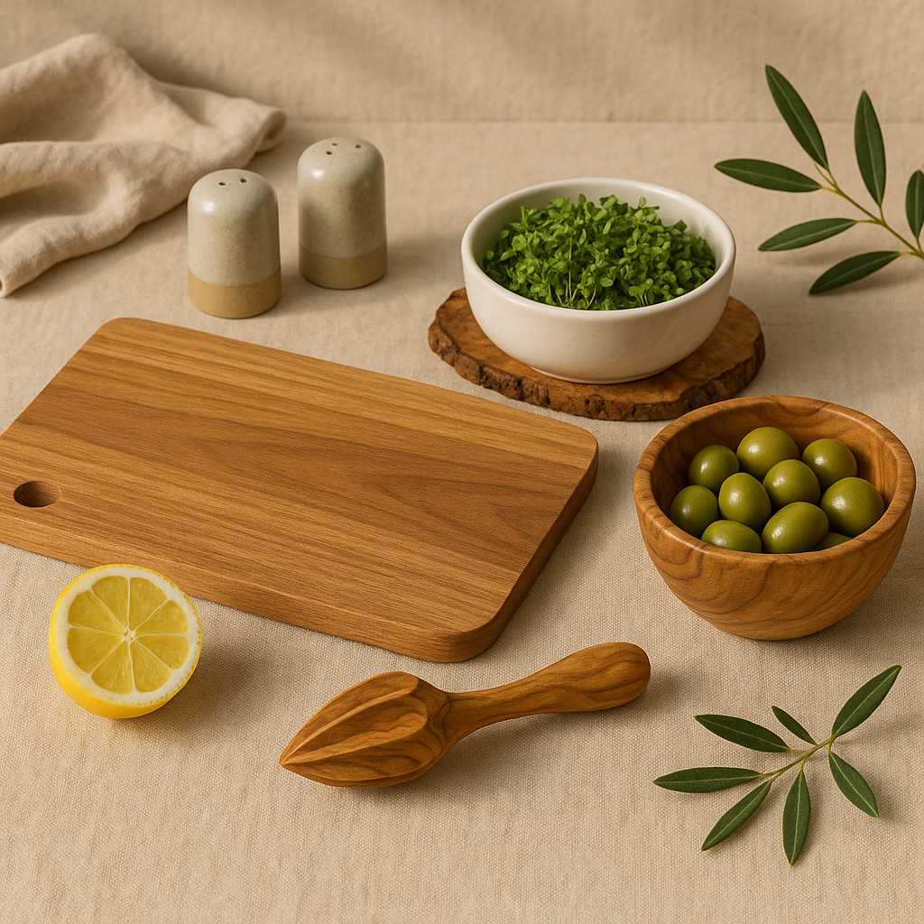 Olivenholz, Bambus, Kokusnuss – bei ELYSERA wählen wir bewusst natürliche Rohstoffe, die durch ihre Haptik, Langlebigkeit und Ästhetik überzeugen. Jedes Material erzählt seine eigene Geschichte: von der Natur geformt, von Hand veredelt, für dich ausgewählt. Unsere Produkte bringen Wärme, Charakter und Ursprünglichkeit in deinen Alltag – ganz ohne Kompromisse bei Funktion und Design. Denn wahre Qualität fühlt man.