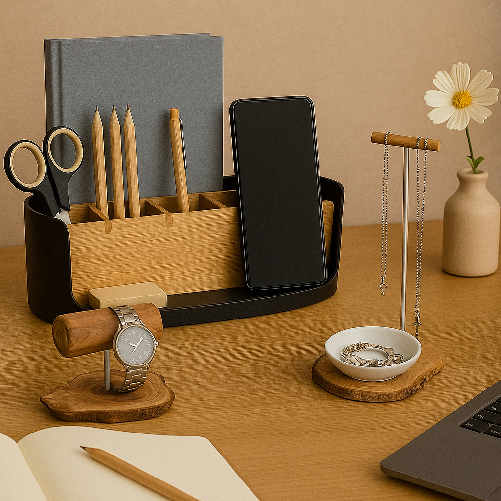 Neben Olivenholz setzen wir auf natürliche Materialien wie Bambus und Kokosnuss. Bambus wächst schnell, ist robust und leicht – ideal für nachhaltige Alltagsprodukte. Kokosnuss überrascht mit ihrer natürlichen Haptik und einzigartigen Textur. Alle Materialien vereinen Funktion, Ästhetik und Umweltbewusstsein – ganz im Sinne von ELYSERA.