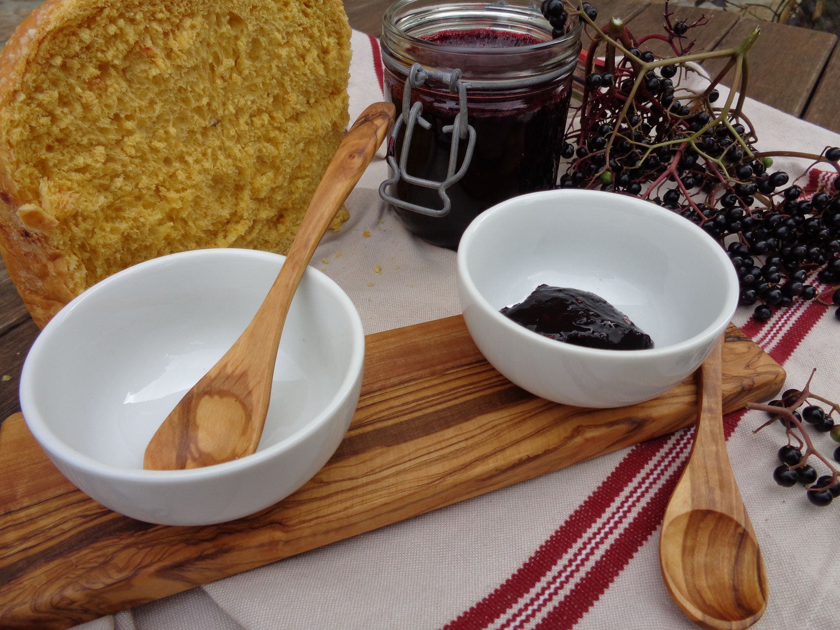 Zwei kleine Löffel aus Olivenholz runden das Ensemble perfekt ab.