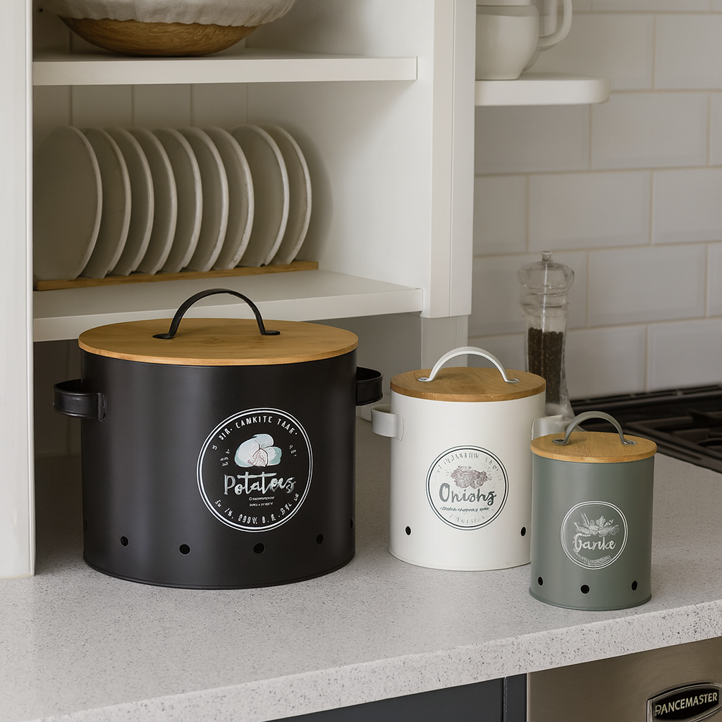 Ergänzend erhältlich: passende Zwiebel- und Kartoffeldose