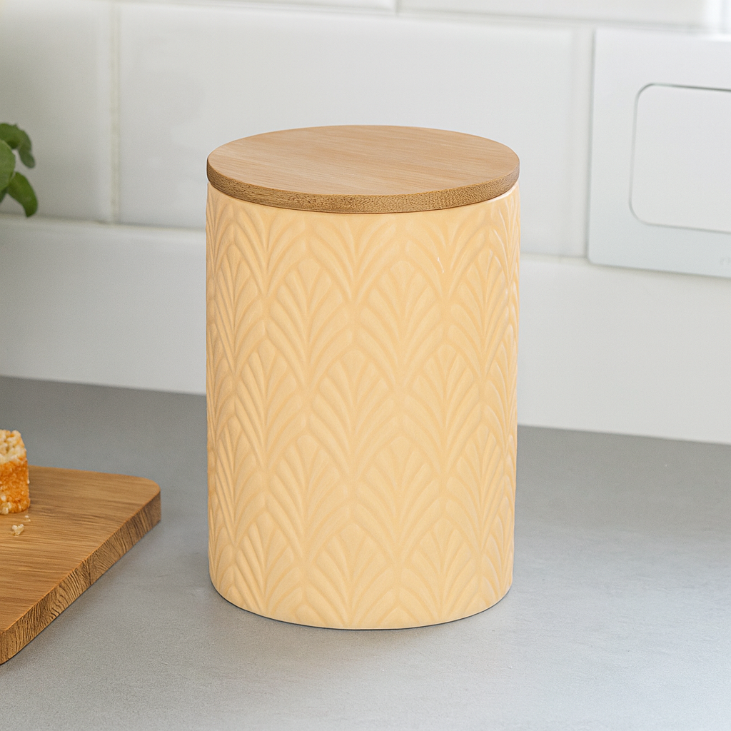 Keramikdose mit passgenauem Bambusdeckel für sicheren Verschluss