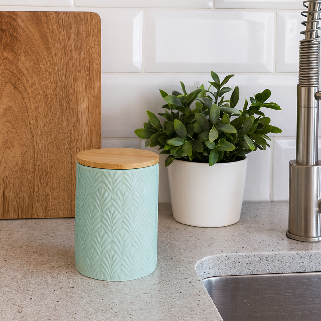 Diese Keramikdose kombiniert Funktionalität mit frischem Design und setzt stilvolle Akzente in jeder Küche.