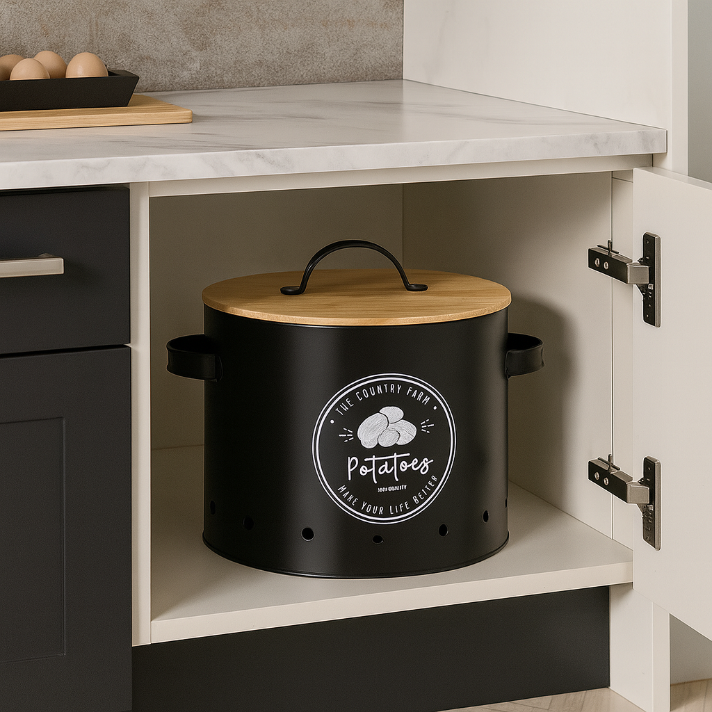 Diese Kartoffelvorratsdose bietet stilvolle Ordnung und schützt deinen Vorrat zuverlässig – ein unverzichtbares Element für eine aufgeräumte, moderne Küche.