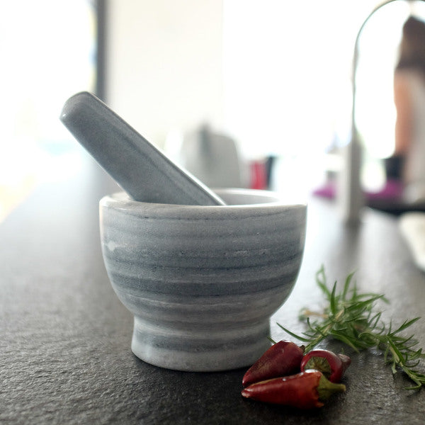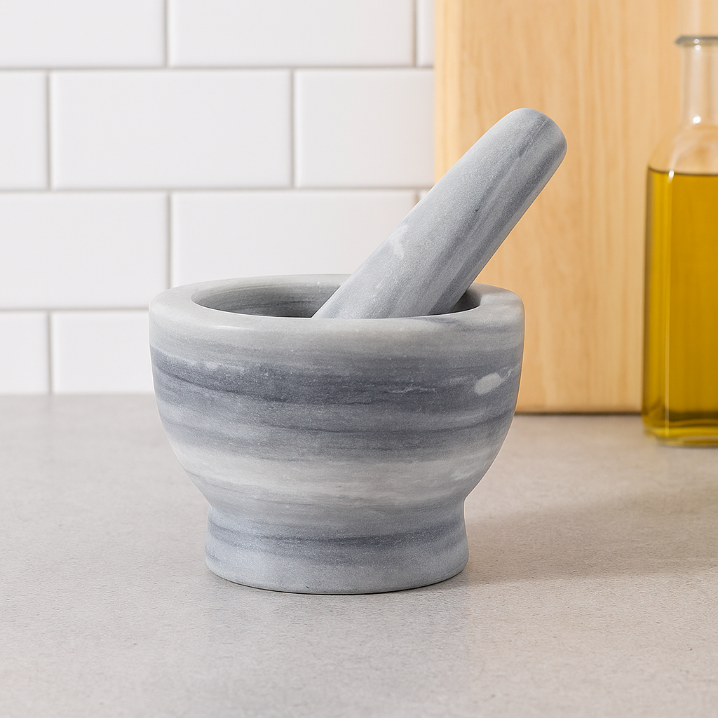 Dieser Mörser aus Marmor ist mehr als nur ein Küchenhelfer – er verbindet Handwerkskunst mit Eleganz und macht jedes Zubereiten zu einem Moment voller Stil und Genuss.