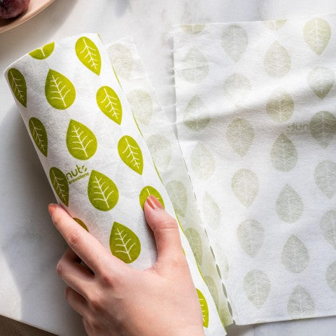 Diese wiederverwendbare Küchenrolle besteht aus 100 % Bambus-Viskose, ist plastikfrei und vollständig kompostierbar.
