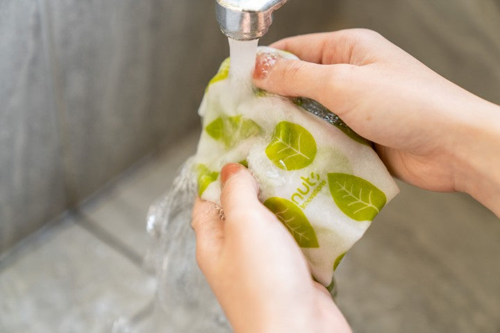 Stark verschmutzte Tücher können im Wäschenetz bei bis zu 40 °C in der Waschmaschine gereinigt werden. Nicht für den Trockner geeignet, nicht bügeln.