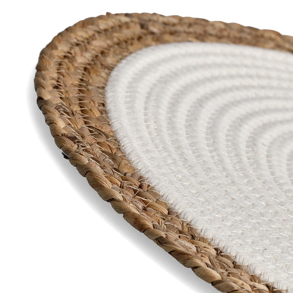 Dieses runde Platzset kombiniert natürliche Maisblätter mit weißer Baumwolle und bringt so eine elegante, zugleich schlichte Note auf jede Tafel.