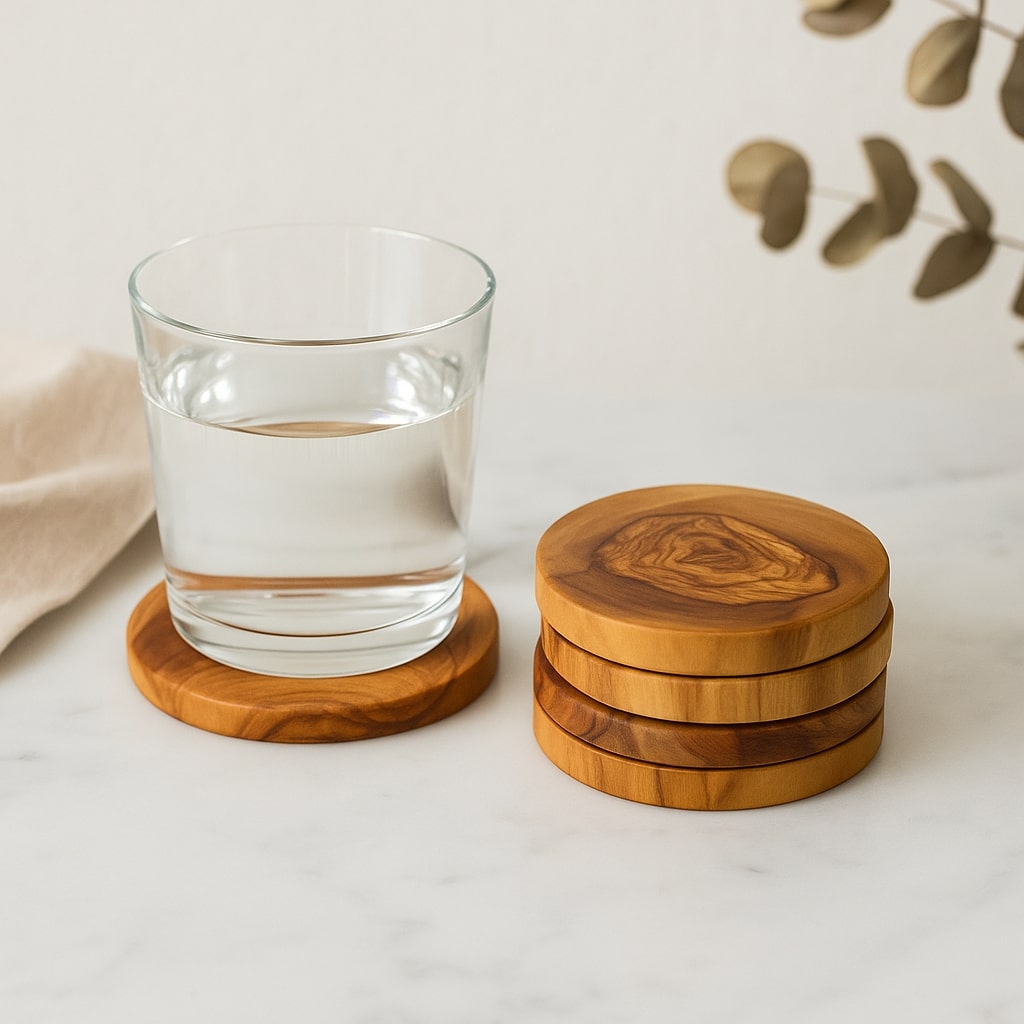 Diese stilvollen Untersetzer aus hochwertigem Olivenholz eignen sich ideal für Gläser, Flaschen, heiße Tassen oder Kerzen.