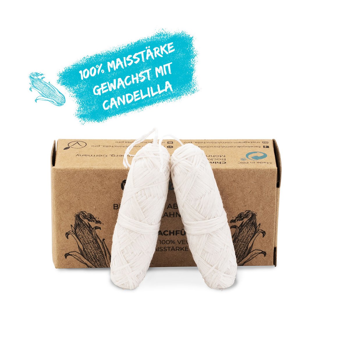 Diese biologisch abbaubare Zahnseide aus Maisstärke wird mit Candelillawachs behandelt und dezent mit Minze verfeinert – für eine frische, plastikfreie Zahnpflege ohne Kompromisse.