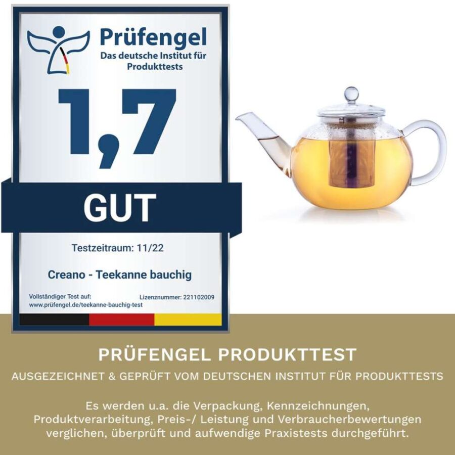 Flache, formschöne Glaskanne mit 1,2 L Volumen – perfekt für mehrere Tassen Tee