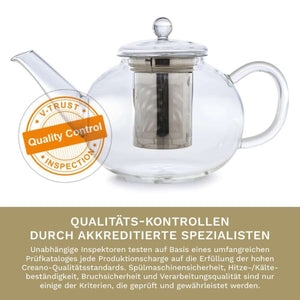 100 % tropffrei, hitzebeständig und mundgeblasen aus hochwertigem Borosilikatglas
